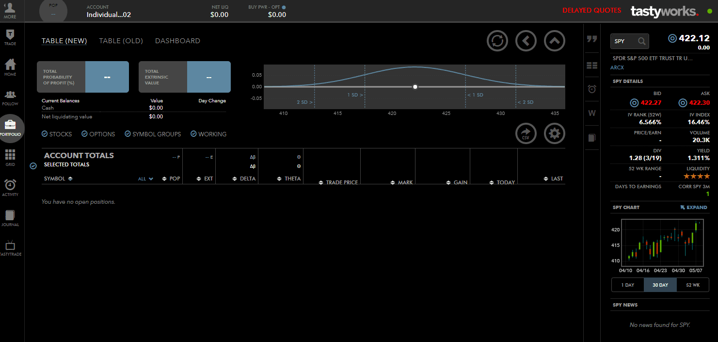 Hier ein paar Screenshots aus dem der Webversion der Trading Plattform von Tastytrade.